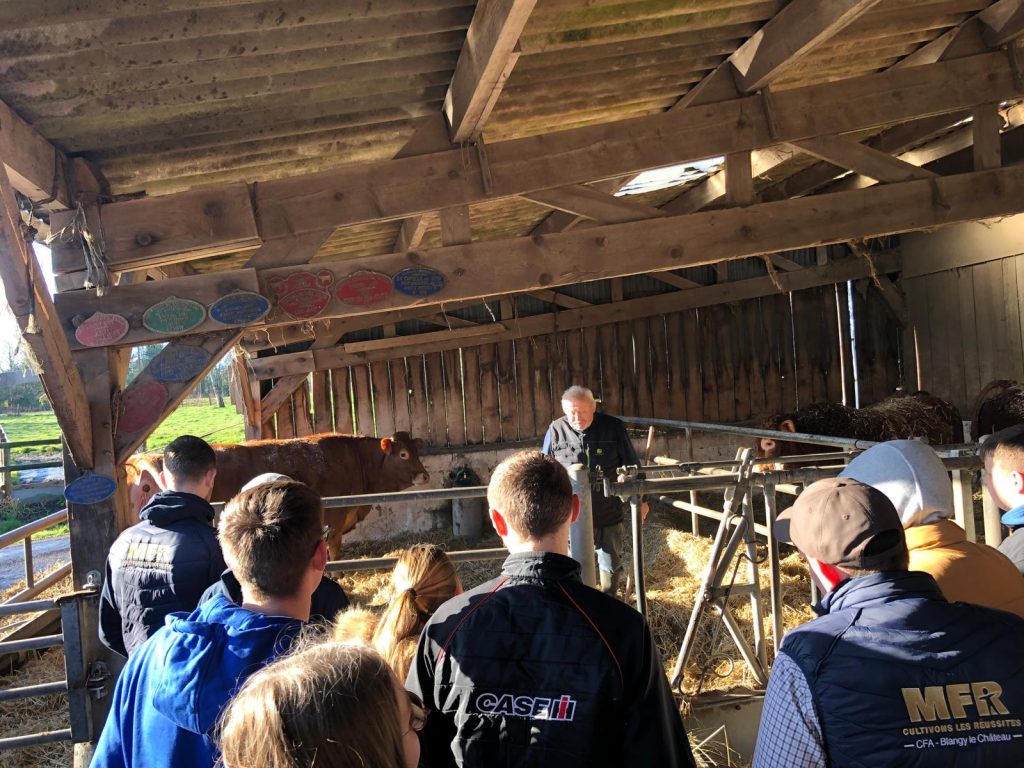 Etienne Aubert a partagé avec eux sa passion de l’élevage et de la sélection en race Limousine. A travers cette visite, les élèves ont pu découvrir la conduite d’un élevage naisseur.