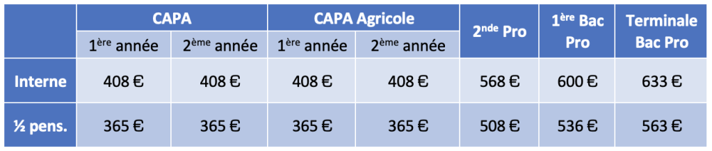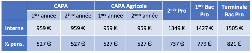 TARIFS EN FORMATION INITIALE POUR L’ANNÉE SCOLAIRE 2026-2027