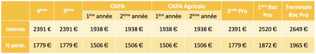 TARIFS APPRENTISSAGE POUR L’ANNÉE SCOLAIRE 2026-2027 : secteur privé